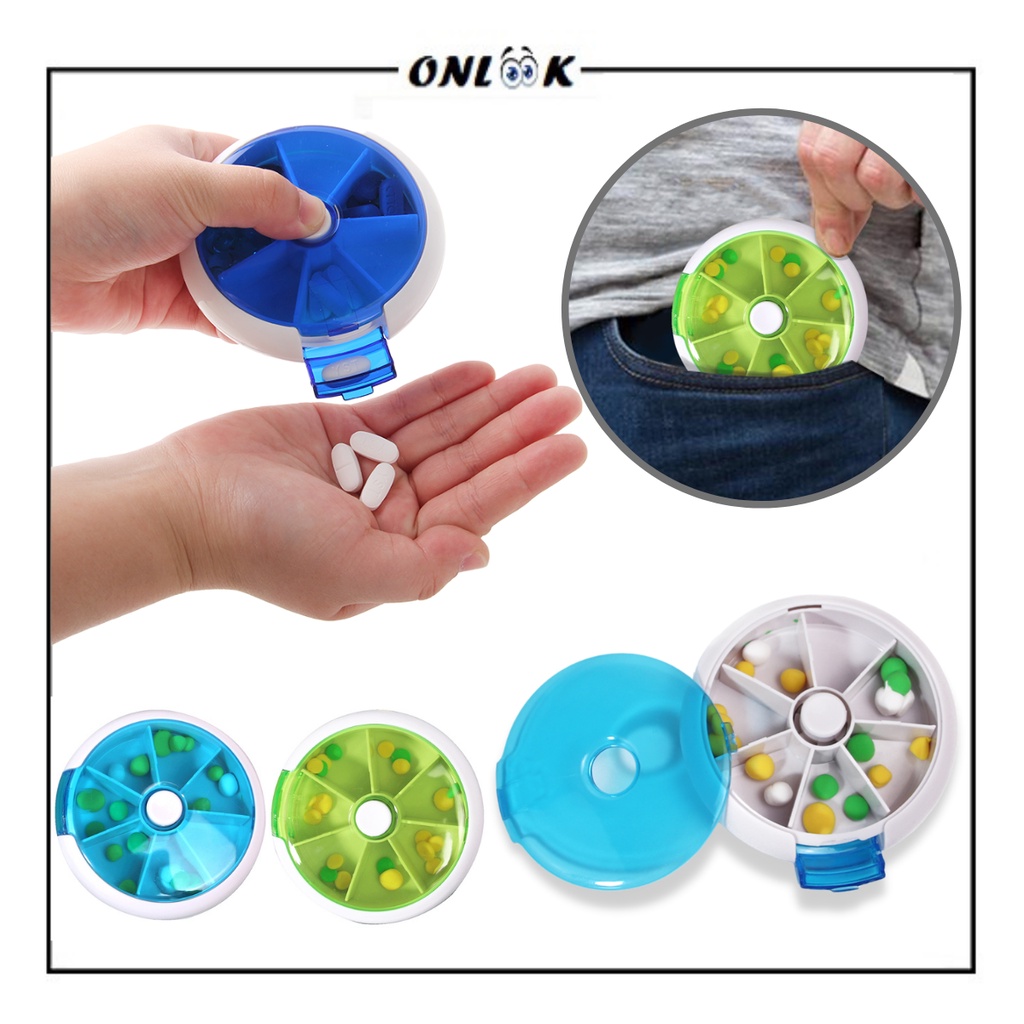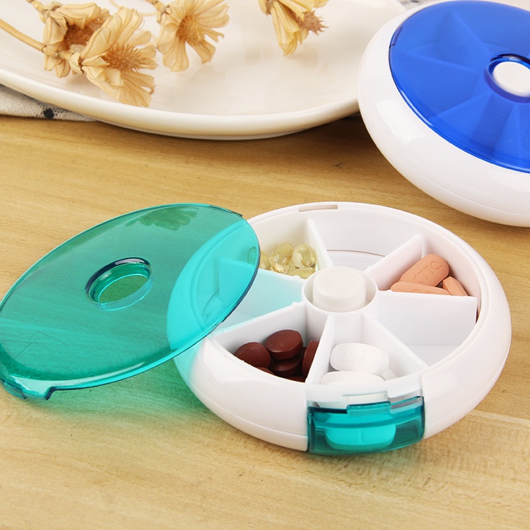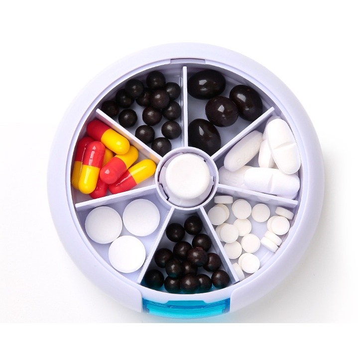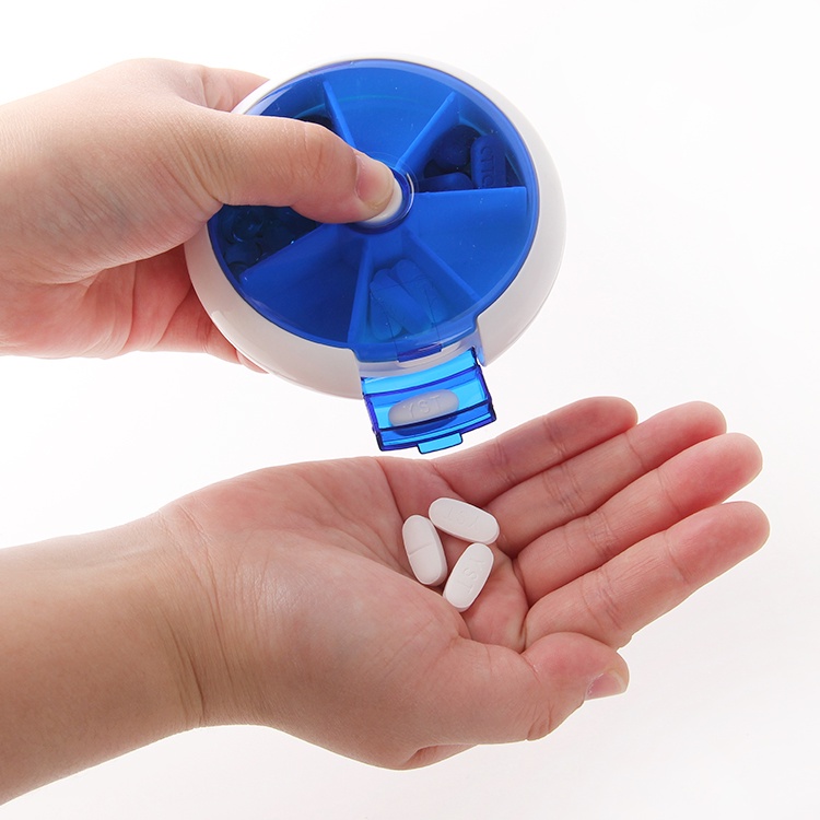 Untuk mengeluarkan obat, Anda cukup menekan tombol pemutar yang terletak di tengah. Kotak obat ini sesuai untuk dibawa berpergian atau untuk memastikan orang tua / anak-anak yang sedang sakit agar bisa mengonsumsi obat dengan takaran yang benar.